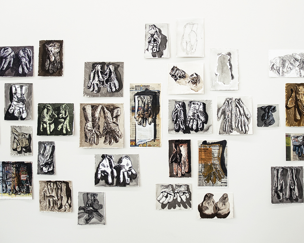 This work is part of a large project comprehensive of drawings, video, and a series of bronze sculptures depicting used gloves I collected from immigrant workers in construction sites in Texas.