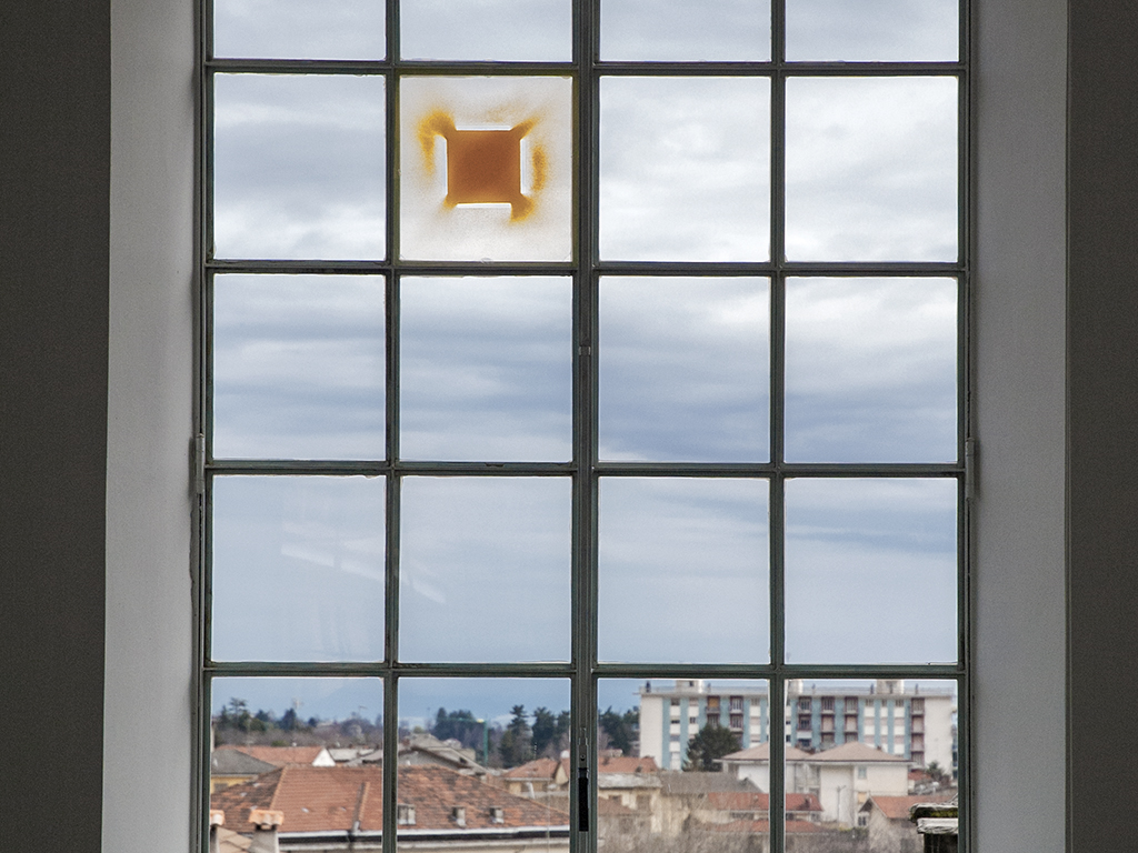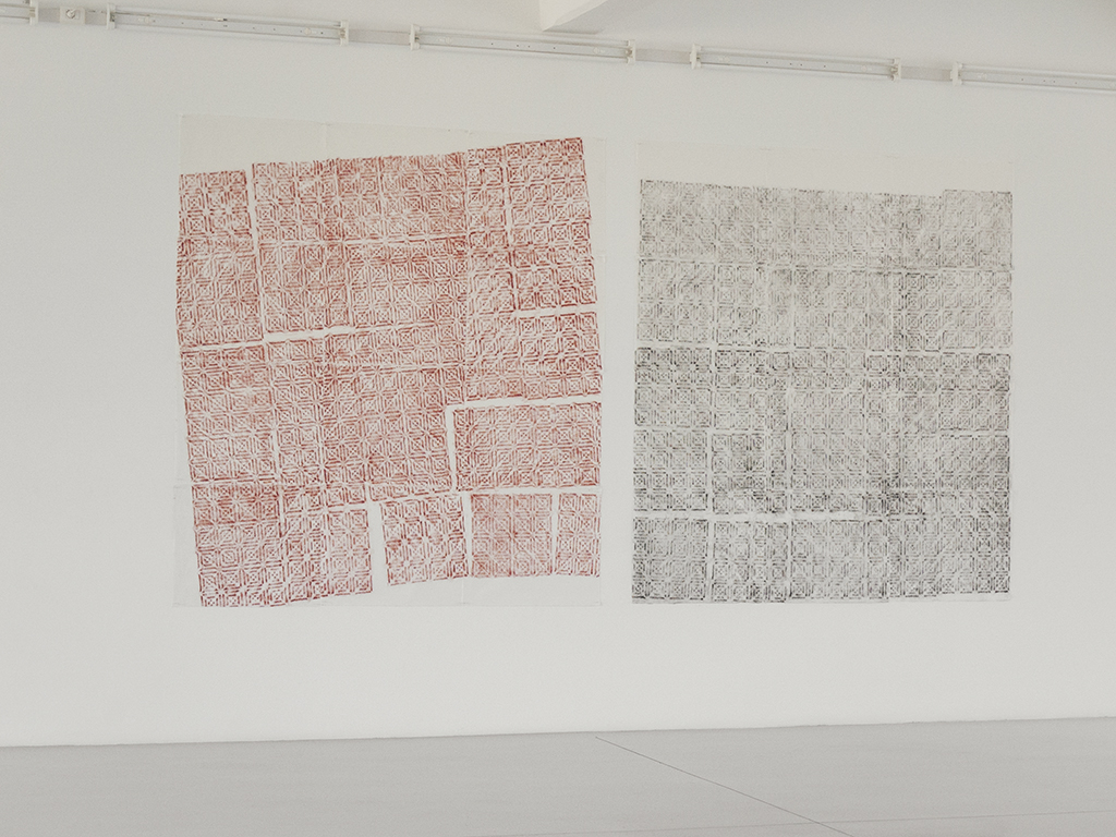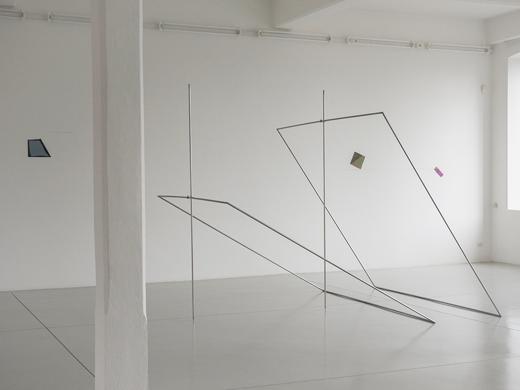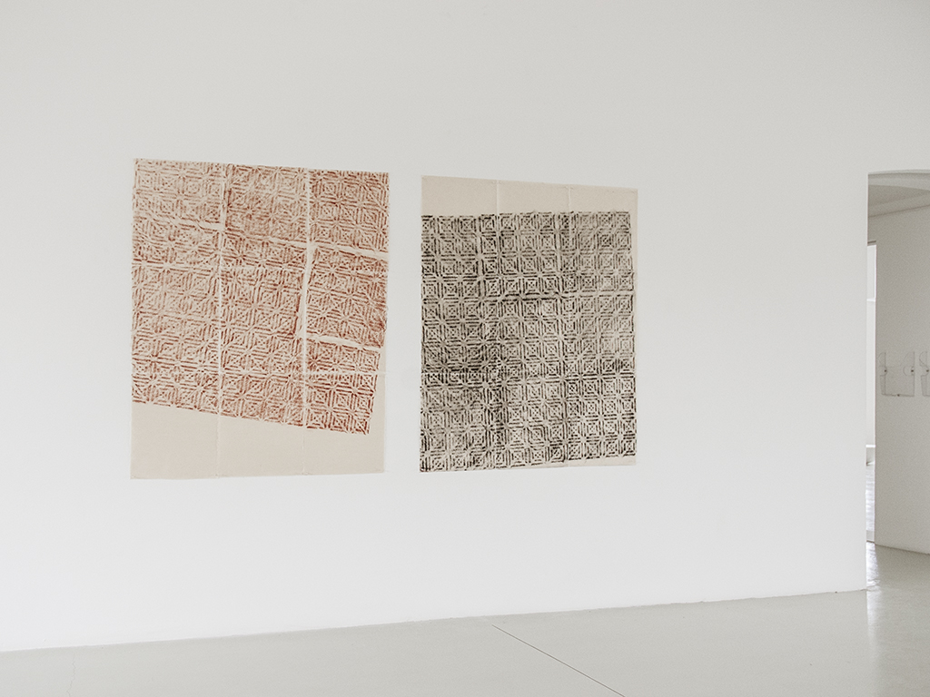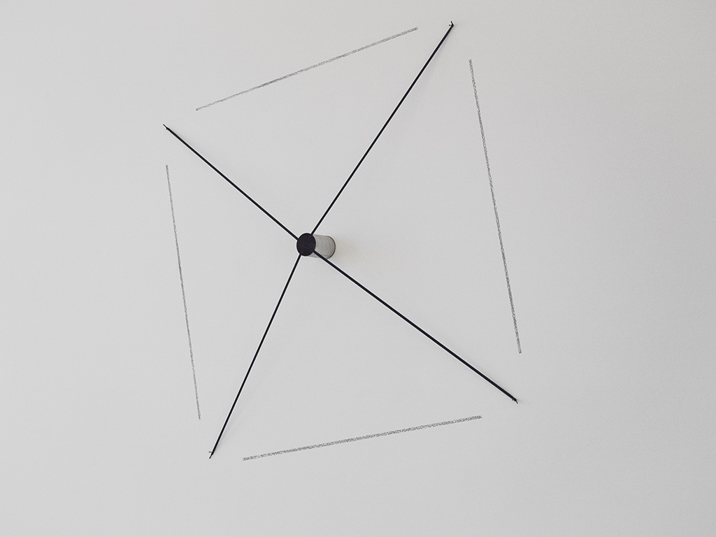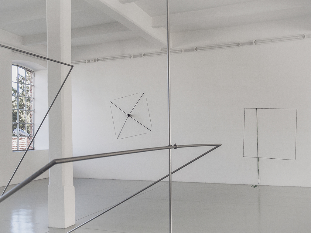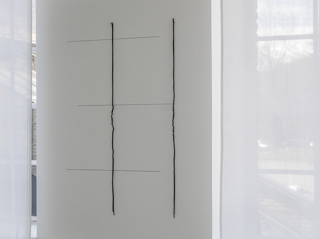 Here, Not Here March 29 – August 2, 2015, Tucci Russo Studio per l’Arte Contemporanea, Torre Pellice , Italy giving space (2015), shoelaces and wall drawing, cm 118 x 72