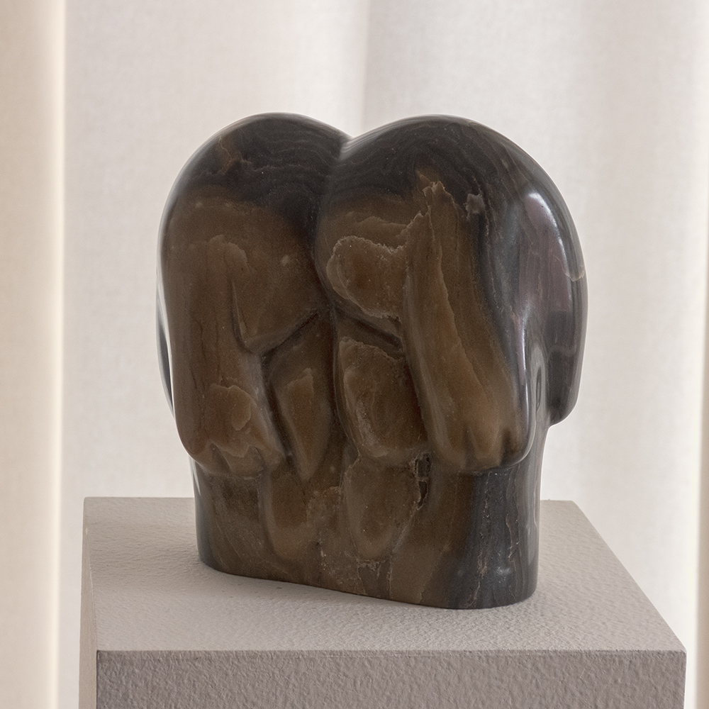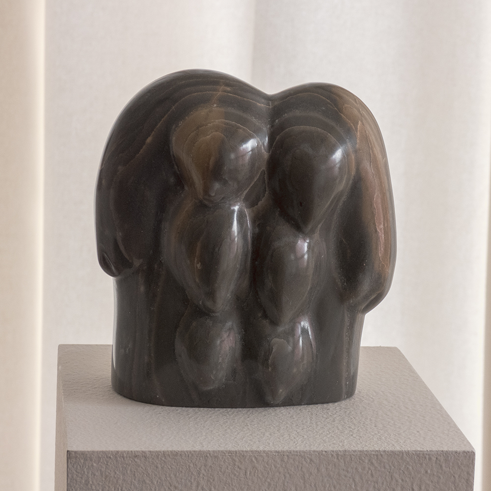 Artemis, Reformed (Portable Nature) is a compact sculptural work carved from grey tiger’s eye alabaster. The form draws inspiration from the ancient Artemis of Ephesus, reimagining the goddess of fertility and protection in a contemporary, intimate scale.
