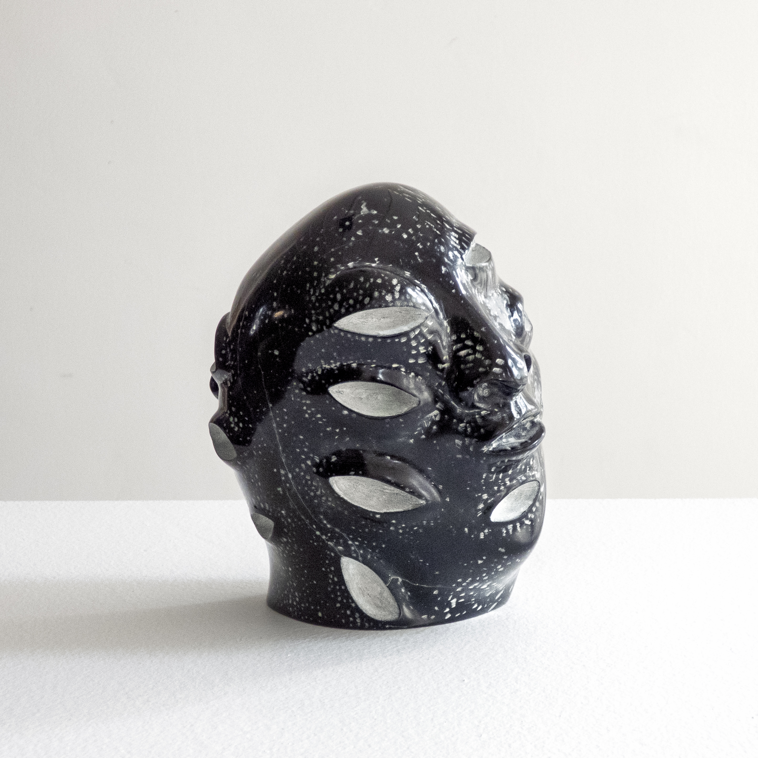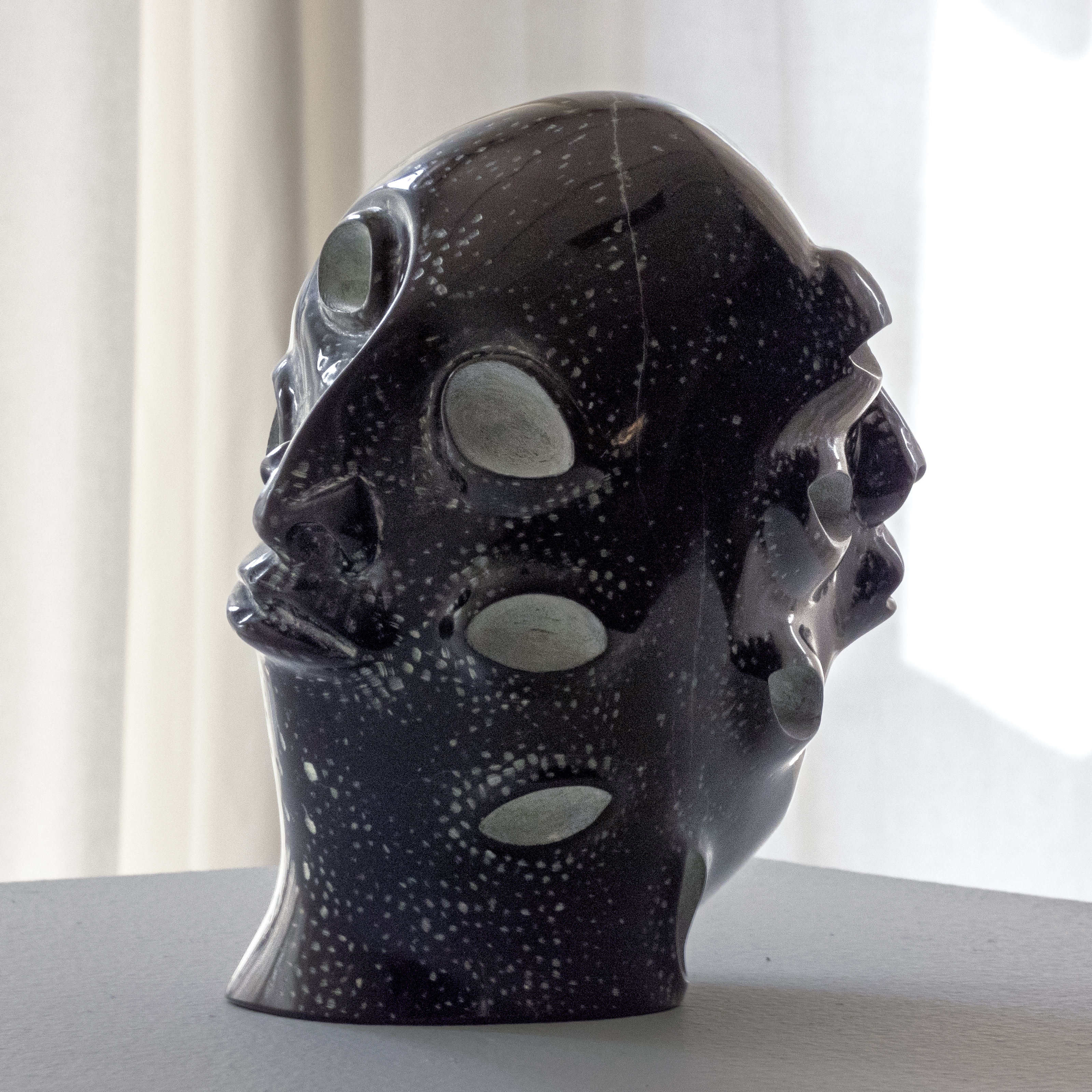 The White Man is a multi-faced head, its overlapping features dissolving into one another, pierced by scattered, eye-like voids. Neither mask nor portrait, the work embodies layered identities and shifting gazes. It challenges the notion of a singular self, echoing the complexities of contemporary existence.