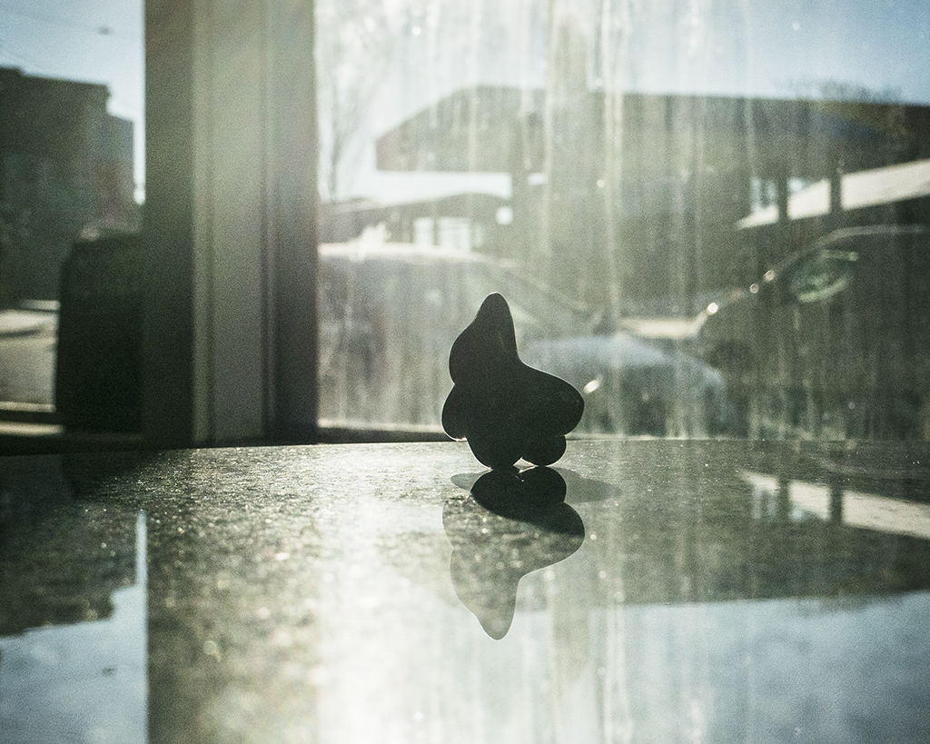 quasi-animal quasi-animal (2019) indian black soapstone and patinated bronze : H. 5.3 cm (photographed at constellation coffee, bloomfield, pittsburgh)